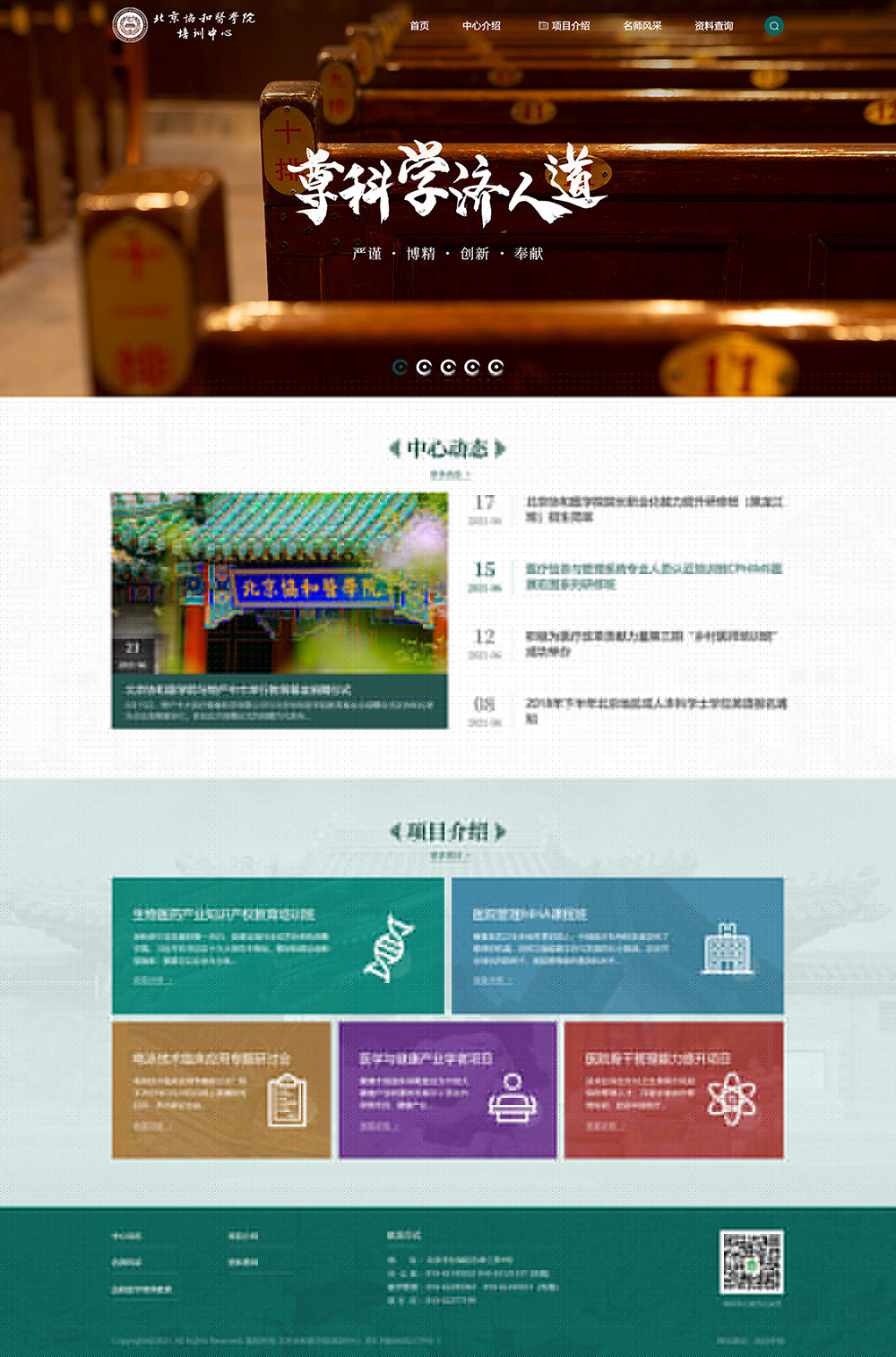 尚品中國項目小組從北京協和醫學院培訓中心的實際需求出發,與甲方團隊多次溝通,深挖協和醫學院培訓中心宗旨及理念,根據項目介紹、名師風采、資料查詢,全新梳理網站架構。最終確定“首頁、中心介紹、項目介紹、名師風采、資料查詢頁面設計,采用中式簡約設計風格,加入協和醫院古典風設計元素,內容多形式呈現,迎合當代移動互聯網時代用戶的視覺審美習慣;在交互設計方面多終端適配,更加符合用戶閱讀瀏覽習慣。