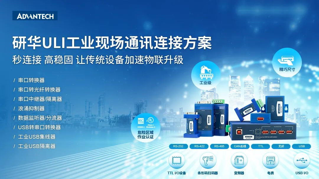 在萬(wàn)物互聯(lián)時(shí)代下,工業(yè)設(shè)備間進(jìn)行交互及相互賦能成為市場(chǎng)發(fā)展趨勢(shì),然而許多工業(yè)現(xiàn)場(chǎng)的重要設(shè)備仍然使用串口通訊,難以實(shí)現(xiàn)多機(jī)之間相互通信。為應(yīng)對(duì)市場(chǎng)發(fā)展趨勢(shì),解決設(shè)備間連接與數(shù)據(jù)傳輸?shù)葐?wèn)題,研華重磅推出ULI工業(yè)現(xiàn)場(chǎng)通訊連接方案,憑借高數(shù)據(jù)傳輸率、隔離保護(hù)、以太網(wǎng)轉(zhuǎn)換、高穩(wěn)固力USB 端口等優(yōu)勢(shì),使傳統(tǒng)設(shè)備輕松融入物聯(lián)世界。