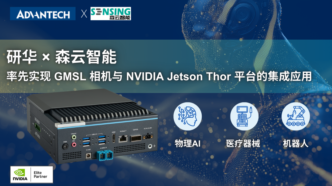 近日,研華科技攜手AI視覺解決方案領域的全球領導者森云智能,率先完成一項重要技術突破。雙方成功將 GMSL 相機集成至基于NVIDIA Jetson Thor平臺的 MIC?742系統中。這一里程碑式成果,充分彰顯了雙方在機器人、自主移動機器人(AMR)及物理 AI 應用領域,打造高性能視覺系統的領先實力。